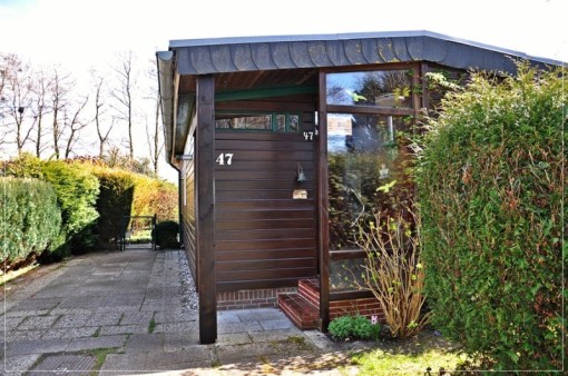 Das Bad ist mit WC und Dusche ausgestattet. Zudem wird der gesamte Bungalow durch eine Zentralheizung beheizt.